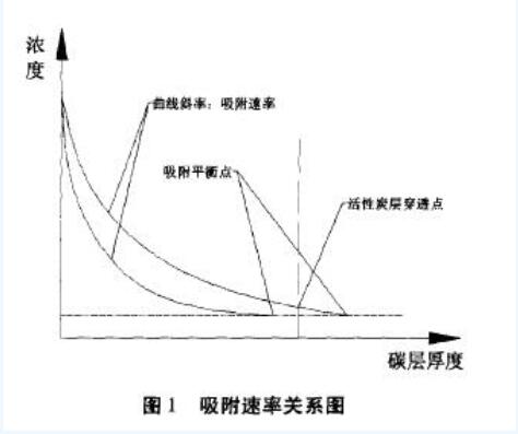 實際中影響碳層吸附速率的因素有:吸附質(zhì)濃度、風(fēng)壓、溫度、活性炭比表面積等等,各條件參數(shù)之間的關(guān)系可以表示為以下公式:
