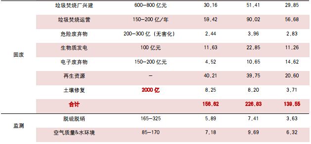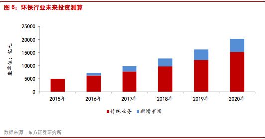 2.十三五進(jìn)入補(bǔ)舊賬階段,治理打開(kāi)產(chǎn)業(yè)成長(zhǎng)空間 霧霾、黑臭水體等嚴(yán)重環(huán)境問(wèn)題的凸顯,致使我國(guó)不得不從利用降低環(huán)境成本來(lái)推動(dòng)經(jīng)濟(jì)增長(zhǎng)轉(zhuǎn)向環(huán)境成本回歸、力圖恢復(fù)生態(tài)環(huán)境的全面治理階段:十三五以及未來(lái)的10-20年,將圍繞氣十條、水十條、土十條三大領(lǐng)域的重點(diǎn)整治,投資主線從減排轉(zhuǎn)向治理:1)原有的減排力度要加大,煙氣治理提標(biāo)、污水處理提標(biāo)、固廢處理設(shè)施投入加大等;2)補(bǔ)舊賬:針對(duì)氣、水、土壤的修復(fù)工作。未來(lái)五年必須加大投資,才能保證環(huán)境質(zhì)量出現(xiàn)拐點(diǎn)。 利用我們上市公司業(yè)務(wù)模塊模型來(lái)分析,進(jìn)入治理階段環(huán)保產(chǎn)業(yè)的投資將全面升級(jí):原有減排產(chǎn)業(yè)繼續(xù)保持30%左右的高增長(zhǎng),黑臭水體、海綿城市、土壤修復(fù)領(lǐng)域給行業(yè)帶來(lái)巨大增量。從我們的測(cè)算看,“十三五”,水、氣、固廢三大領(lǐng)域的原有業(yè)務(wù)模式將繼續(xù)保持20-30%的增速,而水環(huán)境、海綿城市、土壤修復(fù)將帶動(dòng)1.5-2萬(wàn)億的投資,年投入3000-4000億元為環(huán)保投入增量。加上傳統(tǒng)業(yè)務(wù)15年環(huán)保投資體量5000億的基礎(chǔ)上每年保持25%的增長(zhǎng),環(huán)保行業(yè)年投資體量將從4000-5000億上升到1-1.5萬(wàn)億。因此,綜合治理打開(kāi)環(huán)保產(chǎn)業(yè)投資空間,未來(lái)的大公司將圍繞該領(lǐng)域產(chǎn)生。 上市公司業(yè)務(wù)收入結(jié)構(gòu)將發(fā)生變化,水環(huán)境、土壤修復(fù)相關(guān)業(yè)務(wù)占比將迅速上升。由于對(duì)融資能力、公司項(xiàng)目執(zhí)行能力要求更高,上市公司產(chǎn)業(yè)市場(chǎng)份額將上升。保守估計(jì),到十三五末,環(huán)保產(chǎn)業(yè)真實(shí)年投入達(dá)到1.5萬(wàn)億,預(yù)計(jì)上市公司收入體量有望達(dá)到5000億以上。
