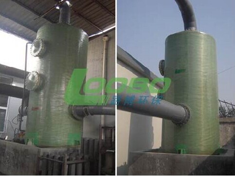 酸(堿)廢氣由風(fēng)管引出后,進入廢氣凈化塔(逆流式洗滌塔)進行凈化處理,凈化塔內(nèi)裝填有一定的填料,這樣可以使廢氣和吸收液充分接觸,從塔上流下來的水再通過水泵提升到塔頂,不斷循環(huán)利用,循環(huán)液在達到一定濃度后再排向污水處理系統(tǒng)統(tǒng)一排放。