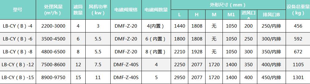 二、防爆式濾筒除塵器規(guī)格表: