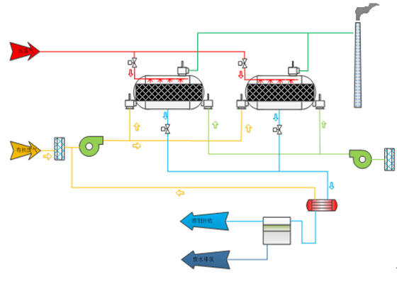 如果采用吸附回收方式,則通過吸附后的有機廢氣可以達標排放,同時經過冷凝回收的高價值的有機溶劑可以循環(huán)利用與生產線,具有很大的經濟效益。